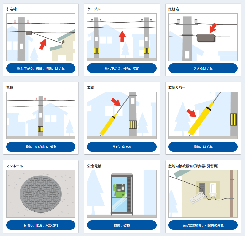 設備を守り、地域の情報通信を快適にお使いいただけるよう何かお気づきの点がございましたら「不安全設備WEB受付」まで情報をお寄せください